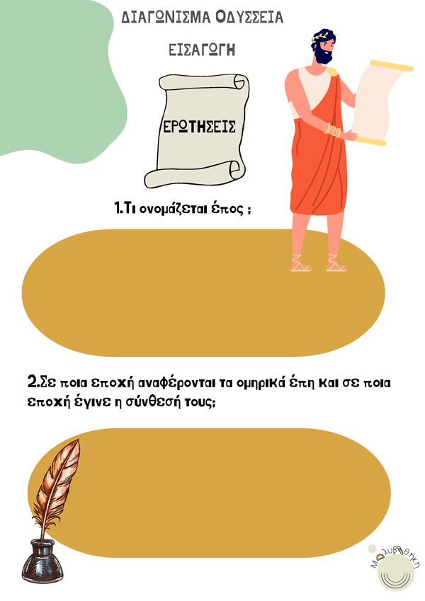 Διαγώνισμα στην Εισαγωγή της Οδύσσειας και στο προοίμιο της Ραψωδίας α, στίχοι 1-25 με εικονογράφηση για τους μαθητές μας!